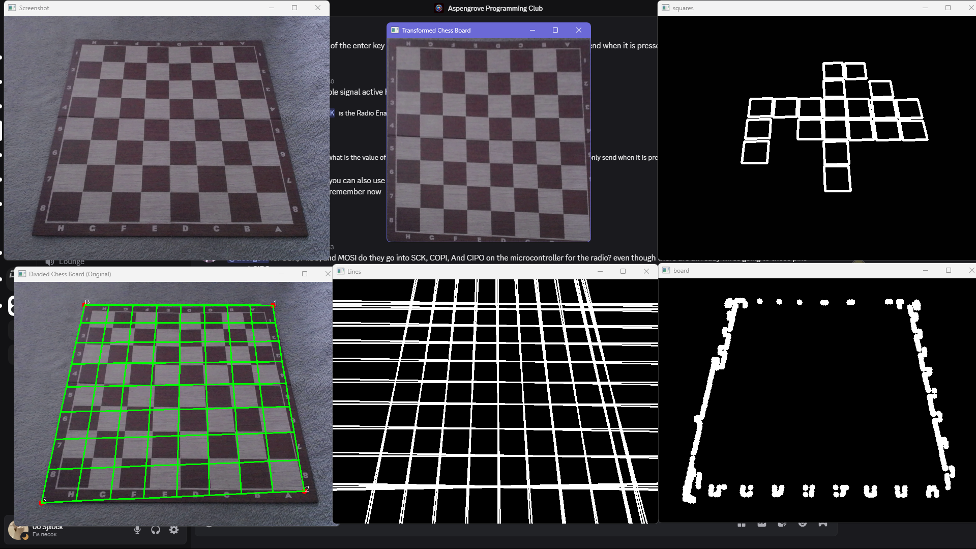 The program is written entirely in Python and uses the OpenCV library for image capture and processing. It allows users to view a live camera feed, detect the chessboard, and display detailed information such as square positions and grid overlays for analysis or integration into other chess-related applications.